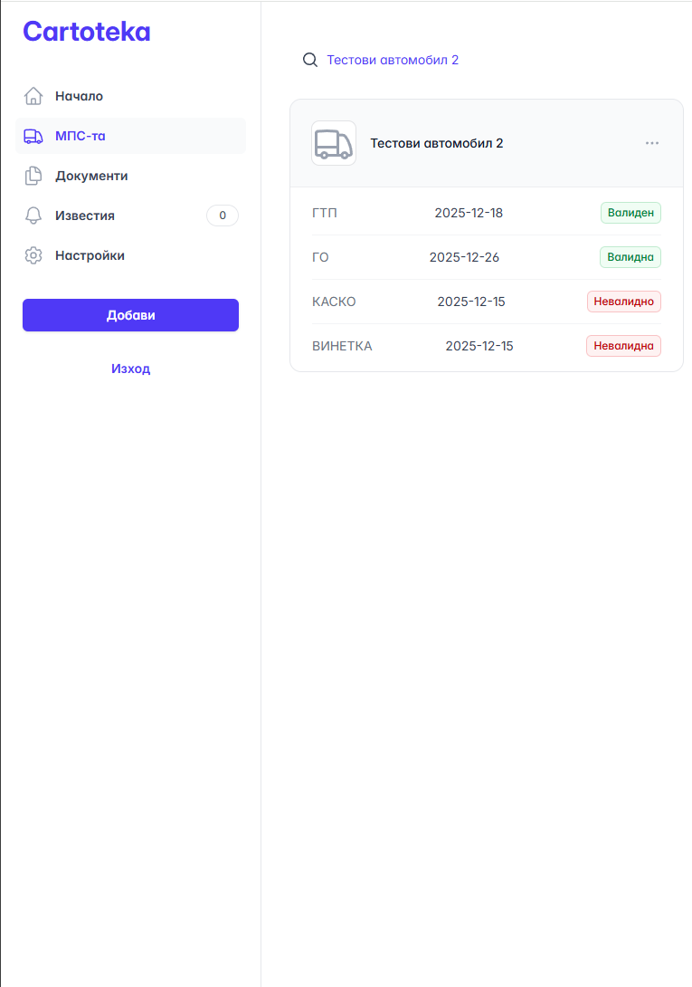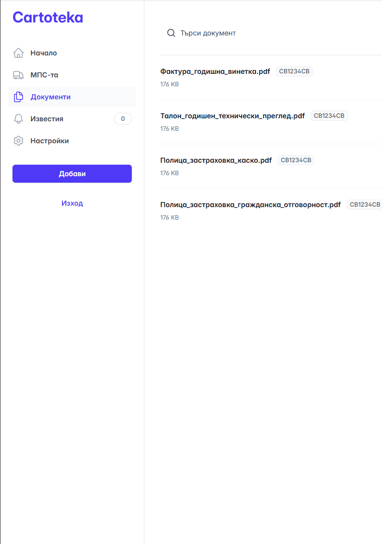 - Можеш да качваш важни прилежащи документи за твоите МПС-та.